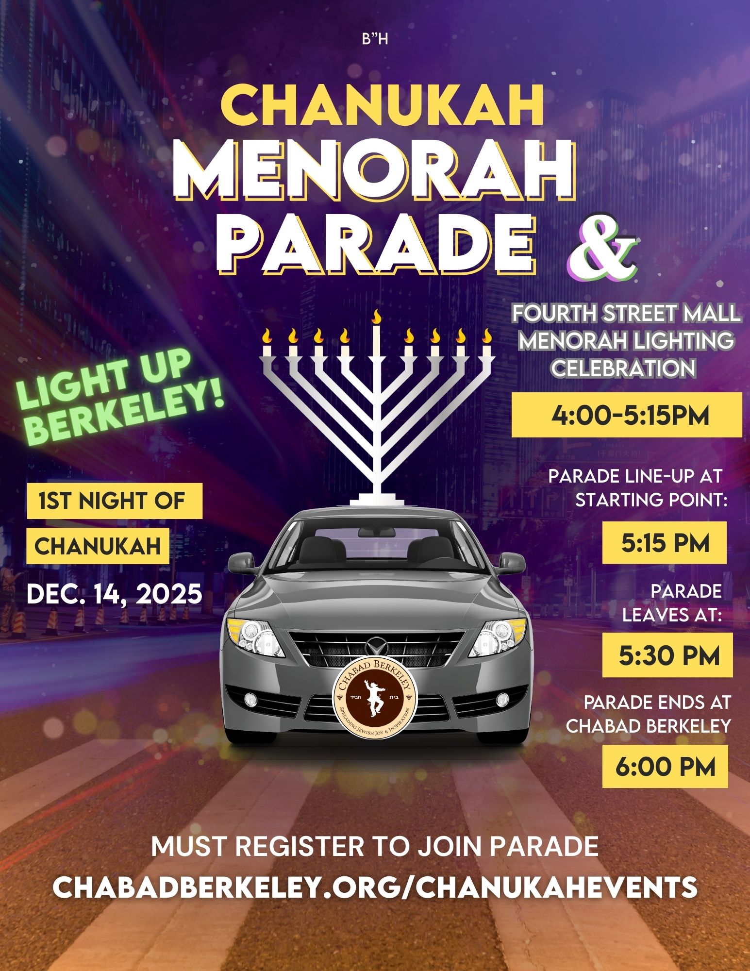 - select Car Menorah Parade Dec 14 after Menorah Lighting -